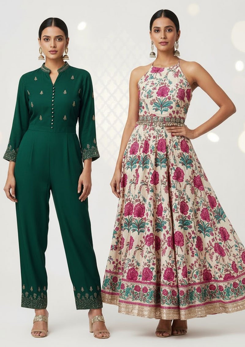 Our Western Wear collection brings you the latest global trends, from structured silhouettes and relaxed denims to elegant evening wear.